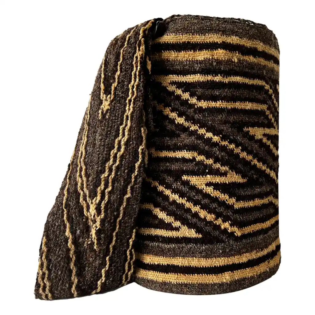 MOCHILA ARHUACA MEDIANA MAESTRÍA Material utilizado: 100% lana de ovejo Simbología: Caminos Tamaño: Grande Alto del cuerpo 36 (cm)⇑ Ancho cuerpo 34 ↔ Alto de la correa 48 *Larga, ideal para cruzar* Ancho de la correa 11 Cada mochila lleva su historia