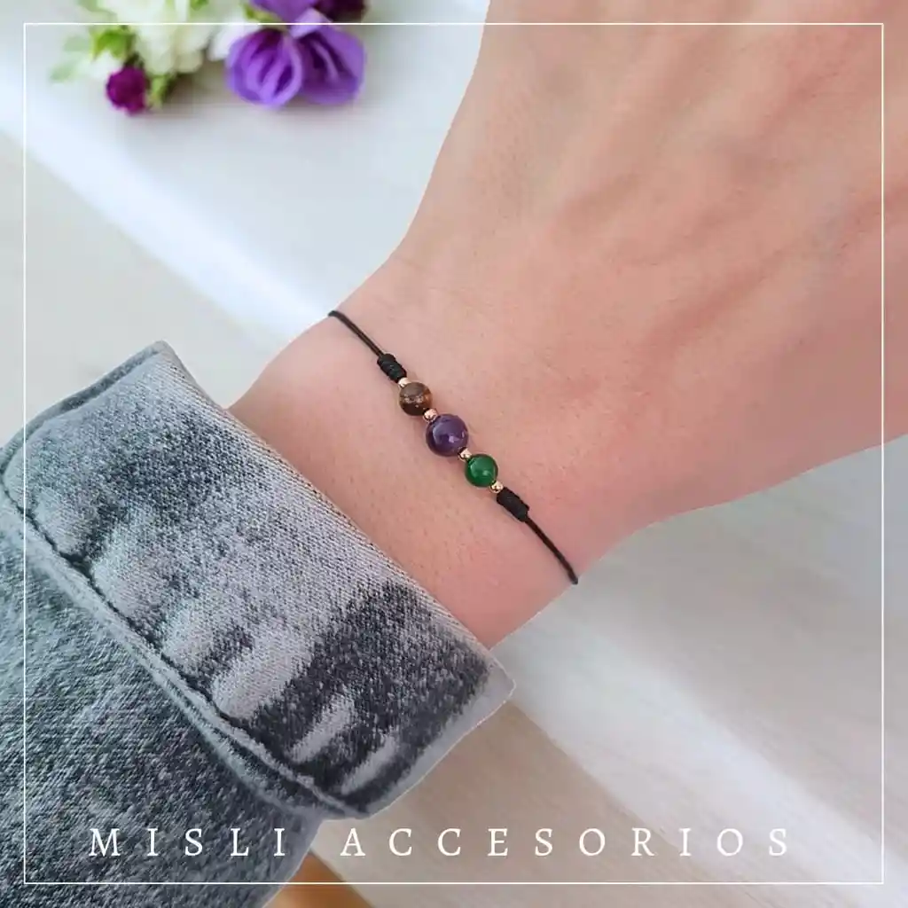 Conéctate con la energía de tu signo zodiacal Lleva contigo la fuerza de los astros con nuestra pulsera zodiacal con piedras naturales. Cada una está cuidadosamente diseñada con piedras auténticas que potencian las cualidades de tu signo, brindándote protección, equilibrio y armonía. Características: - Hecha con piedras naturales seleccionadas según tu signo: ARIES: Amatista - Ojo de Tigre - Jade. - Energía alineada con tu elemento zodiacal (agua, fuego, tierra o aire) - Diseño exclusivo y ajustable para mayor comodidad Ya sea que busques fortaleza, serenidad o una conexión más profunda con el universo, este accesorio será tu amuleto ideal. Elige la tuya hoy y deja que el poder de los astros ilumine tu camino. Si deseas un color de hilo diferente al de la publicación, indícanos por mensaje una vez realices tu compra. Estamos atentos a responder cualquier duda o información adicional que necesites, con gusto te atenderemos!!