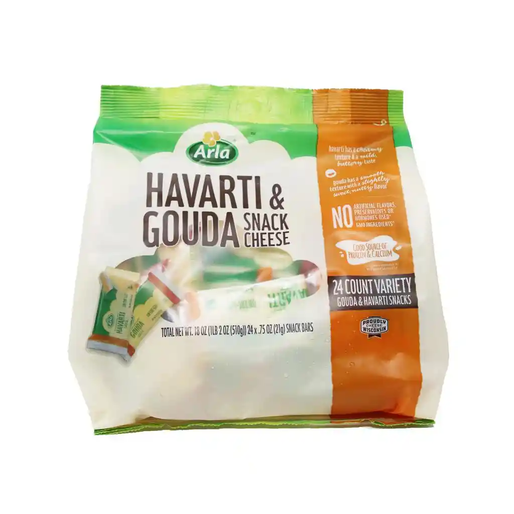 Una merienda fácil y rápida. ¡Descubre la exquisitez en cada mordida con Arla Pasabocas de Queso Havarti y Gouda! Importados y listos para acompañarte, estas 24 unidades son el toque perfecto de sabor auténtico que buscas.