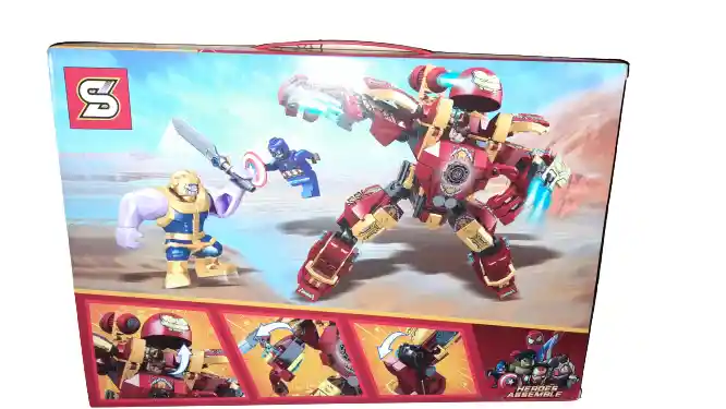 Somos Danny Toys, ofrecemos armable de Avengers personaje Hulk Buster, Capitan América y Thanos. Marca S. Contiene: Piezas 371.. Edad recomendada 6+. Material: Plástico.