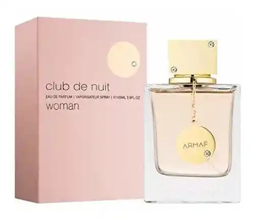 Club De Nuit de Armaf es una fragancia de la familia olfativa Floral Frutal para Mujeres. Las Notas de Salida son naranja, toronja (pomelo), bergamota y durazno (melocotón); las Notas de Corazón son rosa, geranio, jazmín y lichi; las Notas de Fondo son pachulí, vainilla, almizcle y vetiver. Aroma: floral frutal. Notas de fondo: almizcle, pachuli, vainilla, vetiver. Notas de corazón: geranio, jazmín, lichi, rosa. Notas de salida: bergamota, durazno, naranja, pomelo. País de origen: Francia. Para acompañar un estilo único.
