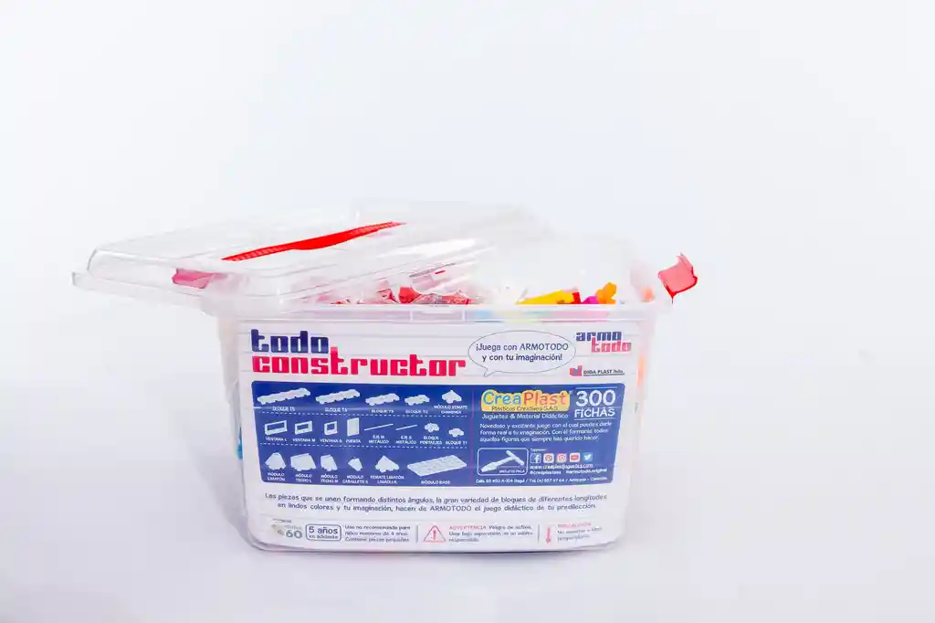 Juego clásico de los 80's. Fichas con aperturas únicas para el ajuste perfecto entre sí, sirven para armar y construir edificaciones, animales, vehículos y todo los que te puedas imaginar (de ahí su nombre ARMOTODO). Este viejo amigo acompaño la infancia de muchos que hoy en día son padres y madres y que mejor manera de recobrar esos recuerdos de nuestras infancias que con nuestros niños, no importa si no eres un niños tu también eres libre de disfrutar de los recuerdos de aquellas épocas. Armotodo incluye las clásicas de desarmado para separar las fichas con mayor facilidad. Incluye instructivos para construir diferentes estructuras acompañadas con tu toques de imaginación.