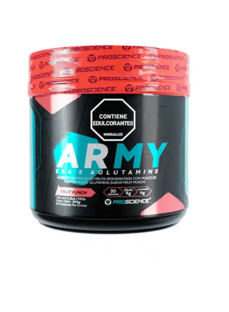 Army es un compuesto de Aminoácidos (BCAA + Glutamina) ideal para la recuperación muscular, la síntesis de proteínas y la prevención del catabolismo durante o después del ejercicio. Producto registrado por Invima. Presentación: Tarro por 540 gr. Dosis recomendada: 1 scoop en 1 L de agua. Servicios por tarro: 30 servicios.