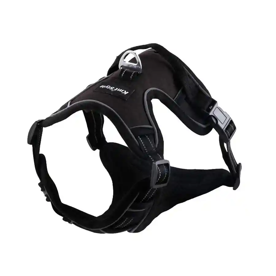 Arnés ajustable para perros elaborado en reata textil de alta calidad con diseño tejido. Cuenta con seguro plástico tipo clic y adicional con carro plástico para ajustar el tamaño. Tiene hebilla metálica para asegurar cualquier tipo de correa. Ideal para pasear a tu mascota de forma segura y con un mayor control. CARACTERÍSTICAS: Color: Azul, beige, rojo y negro. Dimensiones: Ajustable: 65 - 75 cm. Peso aproximado: 110 gr. Material: Reata textil de nylon, plástico.