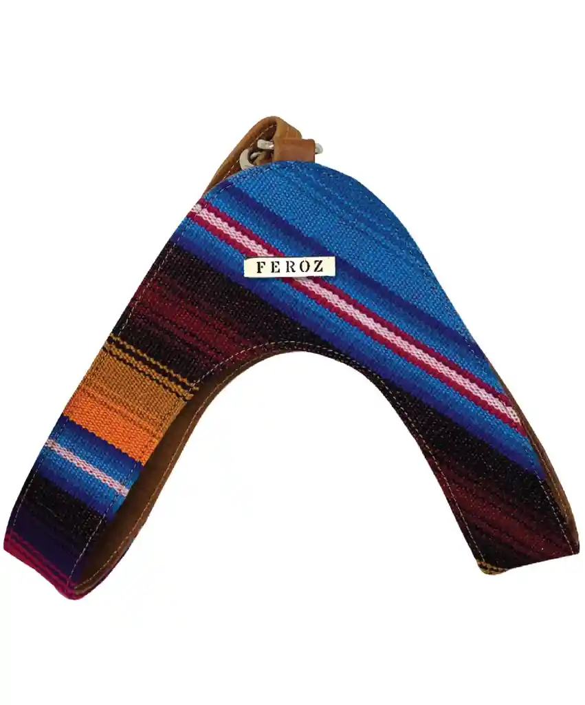 Arneses en Cuero Natural Libre de Cromo y Tejidos Tipo Sarapes en Sedalina, Lana E Hilo Teñidos Con Pigmentos Naturales Hechos a Mano Por Comunidades Indígenas y Herrajes en Zamak. Talla S: Pecho 44 cm - 60 cm