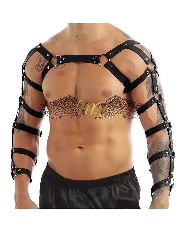 ARNES BRAZOS EN CUERO SINTETICO El arnés HIMEROS MEN elaborado en Neolite, un material sintético MATE O BRILLANTE de alta calidad con herrajes de acero inoxidable que genera un aspecto fashionista, se inspira en los arneses clásicos. La fecha que proporciona la transportadora es estimada o de referencia, por tal motivo el producto siempre será enviado dentro de un día hábil después de la compra ¡ EL PAQUETE ES ENVIADO CON TOTAL DISCRECIÓN Y CONFIDENCIALIDAD AL CLIENTE !