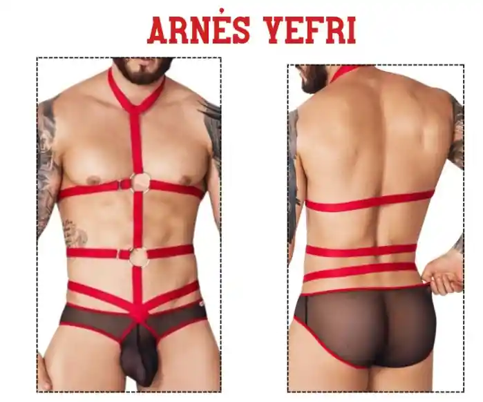 💥 ¡Lleva tu estilo al siguiente nivel con el Arnés Brief Yefri! 💥 Descubre la combinación perfecta entre diseño audaz y comodidad. Este conjunto de cuerpo completo está diseñado para destacar y hacerte sentir imparable. 🔴 Color vibrante: Un rojo intenso que capta todas las miradas. 🔗 Hardware Metálico: Detalles de aros y clips en plata que añaden un toque industrial y sofisticado. 🍑 Malla Transparente: El brief trasero de malla negra no solo es transpirable, sino increíblemente sexy, enmarcado por ribetes rojos. 💪 Ajuste Multi-Tira: Múltiples tiras que envuelven el torso y la cintura para un ajuste seguro y un aspecto definido.