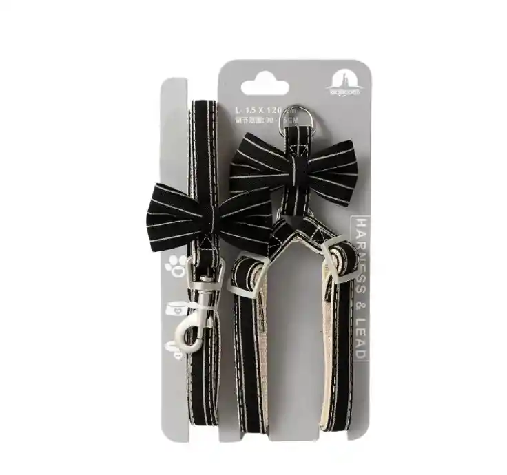Dale un toque de estilo y comodidad a tu mascota con nuestro arnés con traílla y moño. Diseñado para perros pequeños, este arnés ofrece un ajuste seguro y confortable, evitando tirones en el cuello.