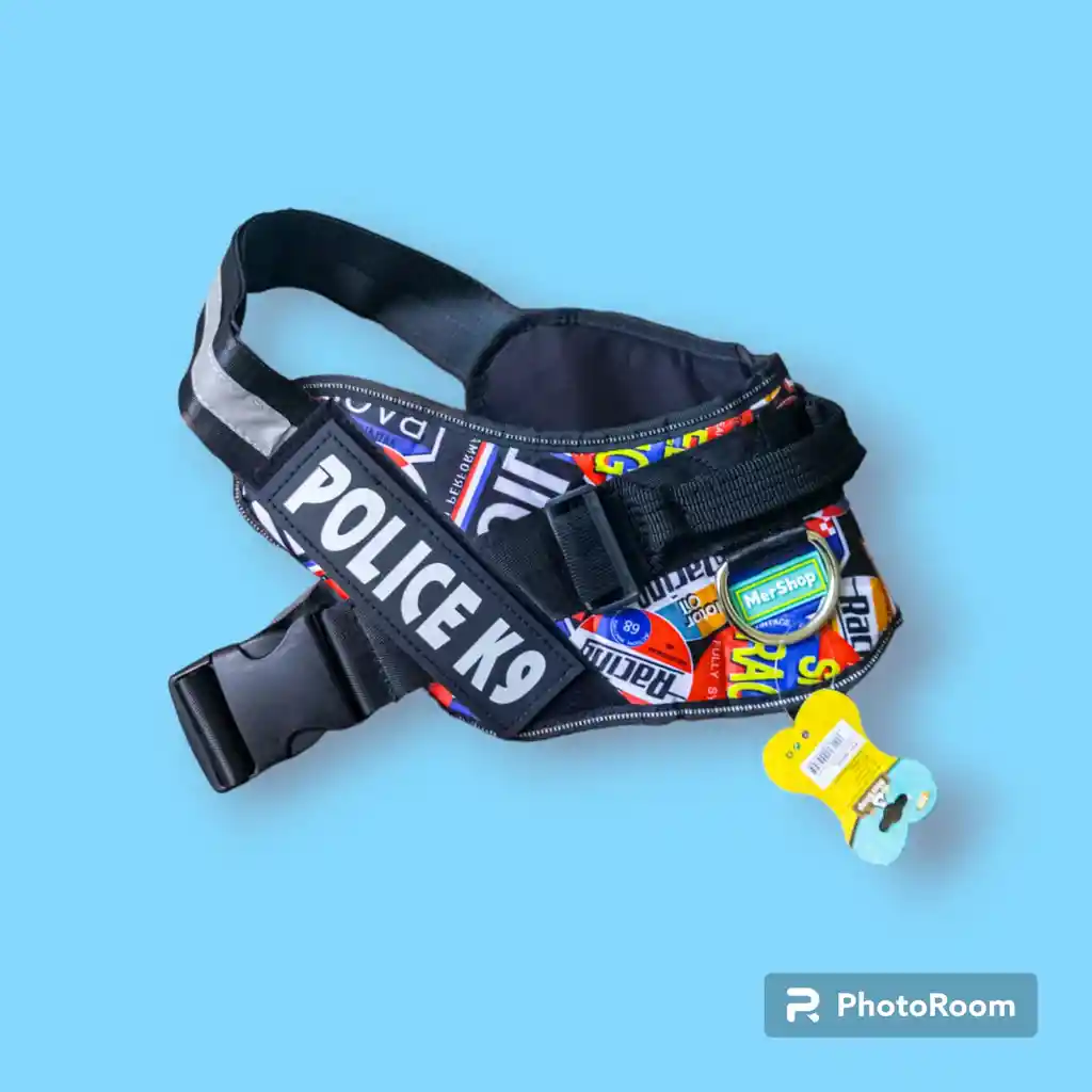 Arnés de seguridad Police. T.XL. Contorno 57 cm máximo y 32 cm mínimo Material Poly algodón Doble cierre y reflectivo frontal.