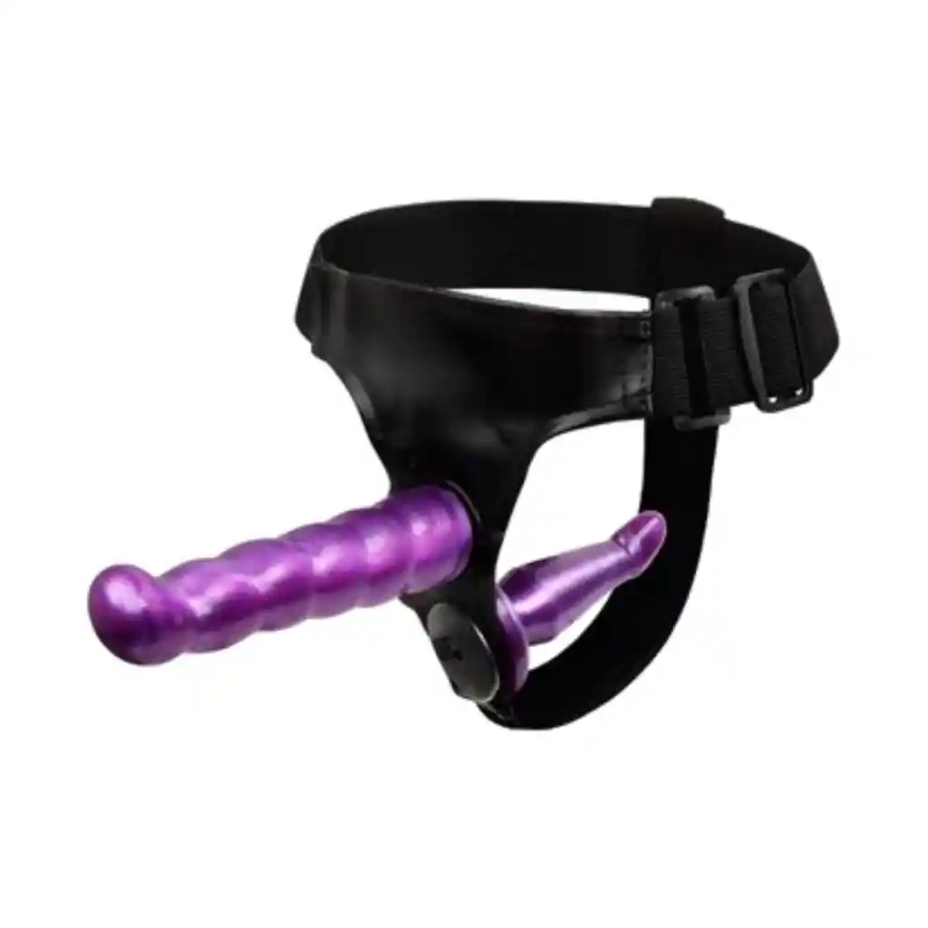 Te permite ajustar el arnés a tu gusto y se puede ajustar en la cintura para permanecer en su lugar durante todo el acto sexual. Elige entre penetrar, ser penetrado o ambos al mismo tiempo. Este arnés es perfecto para lesbianas, es totalmente ajustable a tu abdomen y encaja perfectamente a tu vagina, así que después de puesto, que empiece la acción, podrán sentir las dos! Viene con dos consoladores de silicona diferentes que puedes colocar fácilmente con los soportes incluidos. Los consoladores son fácilmente flexibles pero lo suficientemente estables para que usted o su pareja tengan un control total sobre cualquier movimiento ofensivo. CARACTERÍSTICAS Material: Silicona Resistente al agua Correa ajustable Material: Silicona Resistente al agua Correa ajustable Largo: 16,2 cm Ancho: 3,5 cm Largo: 10,5 cm Largo:2,6 cm