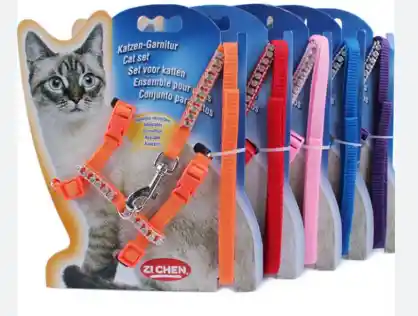 Arnés ajustable para gato Es ideal para sacar a tu gato a dar paseos sin la preocupación que escape o sufra un accidente. Elaborado en nilón. Es fácil de usar. Con tiene un clip de acero resistente, sus correas se ajustan según las medidas de tu michi. Es suave con el pelaje de tu mascota!
