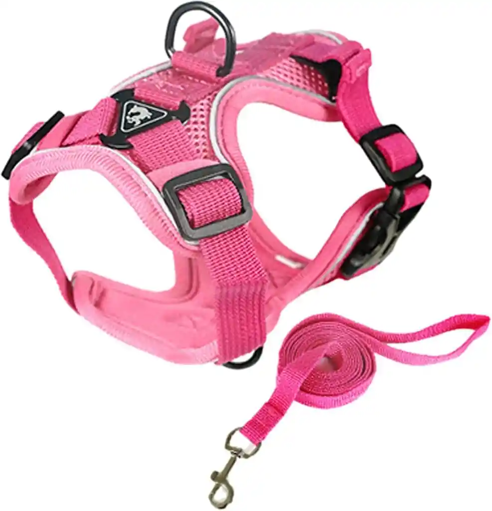 1. Cómodo y eficaz: el arnés para perro proporciona una elevación controlable, cómoda y equilibrada, y tiene una buena distribución de la carga. La rejilla de sándwich seleccionada, el verano no es sensual, está hecha de ligera, transpirable, resistente al desgaste, suave y elástica, por lo que es más cómoda para las mascotas. 2. Función de protección: en comparación con el cuello, la correa de hombro puede dispersar la fuerza, evitar asfixia y deslizamiento, proporciona protección adicional para tu perro mascota y desempeña el papel de llevar un cinturón de seguridad. 3. Ajustable: la correa adopta una hebilla ajustable, que puede adaptarse bien al cuerpo, por lo que no hay necesidad de preocuparse por resbalarse al correr o saltar. Es una buena opción para actividades al aire libre. 4. Visible por la noche: el ribete reflectante del arnés para perro hace que tu perro sea visible al caminar por la noche, y la fuente de luz refleja más ángulos, por lo que es más seguro para tu perro usar nuestro arnés. El diseño de color en contraste hace que el cachorro sea brillante y lindo sin importar por la noche o durante el día. 5. La tracción de cuerda de 4.9 ft protege la seguridad del cachorro. Dos cuerdas están disponibles para que elijas: 4.9 ft plano y 6.6 ft redondo. La cuerda redonda es más fuerte y más larga que la cuerda plana.