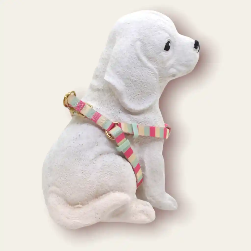 Arnés con todos los herrajes de lujo en color dorado, material muy confortable y suave para los peluditos mas exigentes. Graduable. Incluye detalle de cascabel si se desea colocar. DISPONIBLE EN: TALLA XS (Peso peludito recomendado: 1-4Kg, Contorno de pecho: 25-40cm, Ancho de Riata: 1cm) TALLA S (Peso peludito recomendado: 4-8Kg, Contorno de pecho: 36-52cm, Ancho de Riata: 1,5cm) TALLA M (Peso peludito recomendado: 8-20Kg, Contorno de pecho: 53-65cm, Ancho de Riata: 2cm)