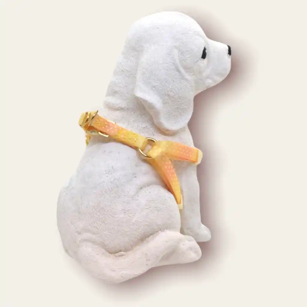 Arnés con todos los herrajes de lujo en color dorado, material muy confortable y suave para los peluditos mas exigentes. Graduable. Incluye detalle de cascabel si se desea colocar. DISPONIBLE EN: TALLA XS (Peso peludito recomendado: 1-4Kg, Contorno de pecho: 25-40cm, Ancho de Riata: 1cm) TALLA S (Peso peludito recomendado: 4-8Kg, Contorno de pecho: 36-52cm, Ancho de Riata: 1,5cm) TALLA M (Peso peludito recomendado: 8-20Kg, Contorno de pecho: 53-65cm, Ancho de Riata: 2cm)