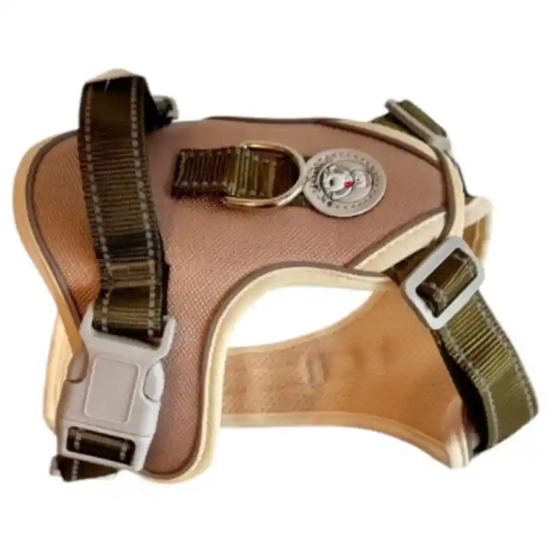Resistente y cómodo arnés tipo pechera para perros, diseñado para brindar mayor control y seguridad durante los paseos. Incluye traílla (correa) y cuenta con doble argolla metálica (hebilla): una superior para sujetar la correa y otra inferior que también puede usarse para la traílla o para colocar la placa de identificación. Su diseño permite una mejor distribución de la presión en el pecho, evitando tirones en el cuello y ofreciendo mayor comodidad a la mascota. 🐶 Talla M Ideal para perros medianos. Perfecto para razas como: Beagle Cocker Spaniel Bulldog Francés Características: Diseño más amplio y resistente Mejor distribución de la presión Incluye traílla