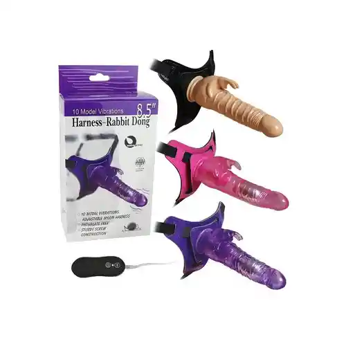 Harnes Rabbit atrevete a cambiar el rol con tu pareja , no hay limites para disfrutar el sexo y este juguete te lo demostrara ! Arnés ajustable con estrías para una mayor estimulación. Fácil de usar y vibracion graduable ; Los Harnes Sophia dan mucho juego, ya que te permiten la movilidad de las manos mientras penetras a tu pareja con un dildo. Hay de muchos tipos (diferentes tamaños, colores, formas,etc.), sólo tienes que encontrar el que más te guste. Material: TPE, ABS, Imitación cuero y Nylon. Tamaño Largo: 19.5 cms Diámetro: 3.9 cms Bateria: 2 Pilas AAA Confidencialidad: Tus pedidos se envían en una caja o sobre totalmente sellado opaco sin nigún tipo de marcas externas. Para nosotros es muy importante tu privacidad. Cuidado Y Limpieza: Jabon Suave O Limpiador De Juguetes. Diametro: 3.9 cms Largo: 19.5 cms