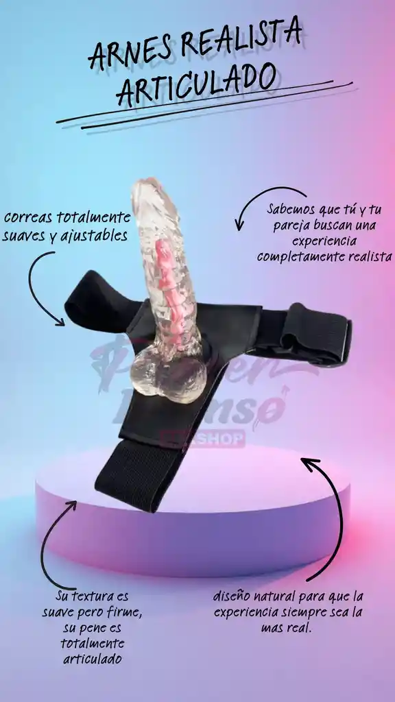 Sabemos que tú y tu pareja buscan una experiencia completamente realista. Y es por eso, que este arnés es ideal. Su textura es suave pero firme, su pene es totalmente articulado, es decir lo puedes mover y dejar en el ángulo que desees. Arnés creado especialmente para aquellas personas que quieren complacer y ofrecer un momento más prolongado y satisfactorio a su pareja. Con un excelente tamaño pensado en todo tipo de gustos, correas totalmente suaves y ajustables que permitirán que disfrutes del juego sin preocuparte por nada, un diseño natural para que la experiencia siempre sea la mas real. CARACTERISTÍCAS: Largo 16 cm Ancho 4 cm Insertable 13 cm Material: Silicona Resistente al agua Articulado No tiene hueco Colores: - Chocolate Y Transparente
