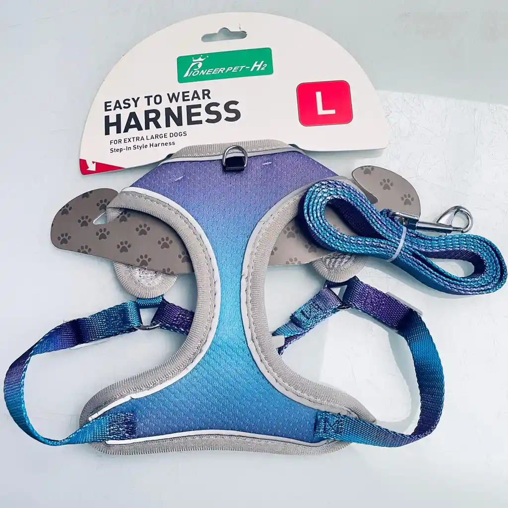 🐾 Arnés Easy to Wear L con Correa – Pioneerpet-H2 🐾 Haz que cada paseo sea seguro y cómodo para tu perro. Este arnés Step-In Style es fácil de poner y quitar, con un diseño acolchado y transpirable que cuida la piel de tu mascota. Su material de malla 100% poliéster garantiza frescura, mientras que las correas ajustables y el clip metálico de la correa brindan máxima resistencia. ✔️ Talla L – ideal para perros de 26 a 36 in (65–90 cm de pecho) ✔️ Incluye correa a juego en tonos azul y púrpura ✔️ Diseño ergonómico y moderno para estilo y confort ✔️ Perfecto para paseos seguros, evitando tirones y molestias 💡 Beneficio clave: tu perro disfruta de libertad y comodidad, mientras tú mantienes el control con estilo.