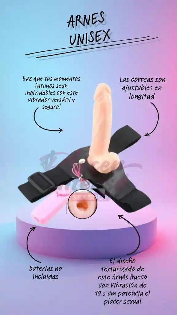 El diseño texturizado de este Arnés Hueco con Vibración de 19.5 cm potencia el placer sexual. Simulación de un pene a través de un dildo hecho con material seguro. Diseño similar a un pene que estimula internamente a tu pareja. Las correas son ajustables en longitud, adecuado para diversas personas. Vibración de velocidad con regulador para una experiencia personalizada. Descubre nuestro Arnés Hueco en nuestra sex shop, diseñado para maximizar el disfrute y adaptarse a diferentes preferencias y anatomías. Con su simulación de piel y texturas estimulantes, este juguete sexual ofrece una experiencia única. Ajusta la longitud de las correas según tus necesidades y explora la intensidad de las vibraciones con el regulador incorporado. ¡Haz que tus momentos íntimos sean inolvidables con este vibrador versátil y seguro!