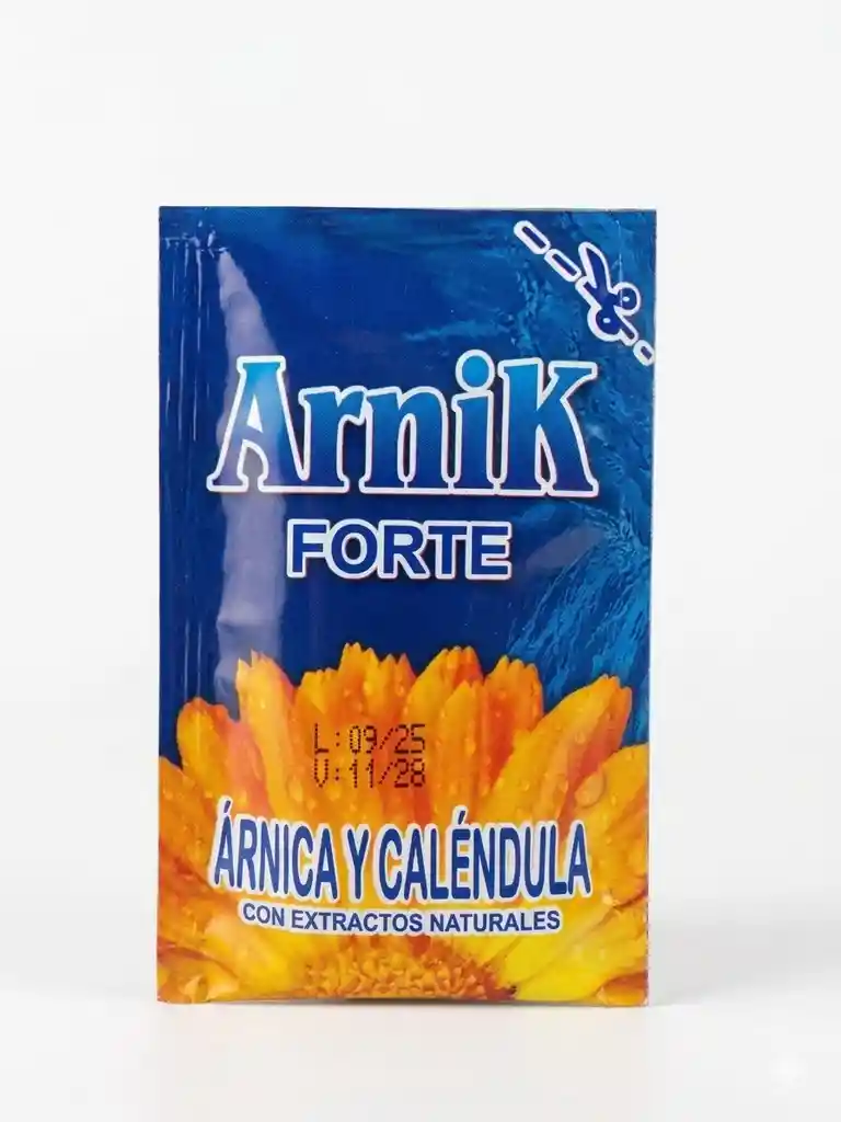 Arnik Forte es un producto de uso tópico formulado con una combinación de extractos naturales de Árnica y Caléndula, ampliamente reconocidos por sus propiedades calmantes y regeneradoras para la piel. Esta presentación en sachet es sumamente práctica para llevar en botiquines de viaje o para el uso inmediato ante pequeños accidentes domésticos.
