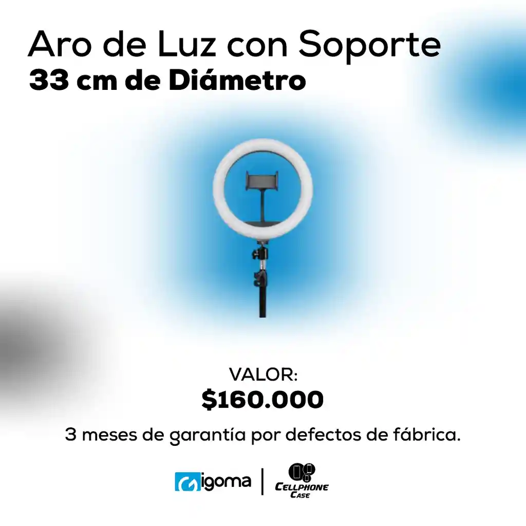 •Dimensiones: Aro del luz de 33 cm y trípode de 1.10 mt. •Soporte para celular •Trípode de 1.10m. •Temperatura De Color: 3000K-6000K. •Índice de reproducción cromática: 90 •Voltaje De Entrada: 5V •Frecuencia: 50-60 HZ. •Lúmenes: 1000LM. •Interfaz: USB (con PTZ + clip de teléfono móvil). •Máxima Potencia: 25W color de la luz: el color frío / cálido olor / color natural.