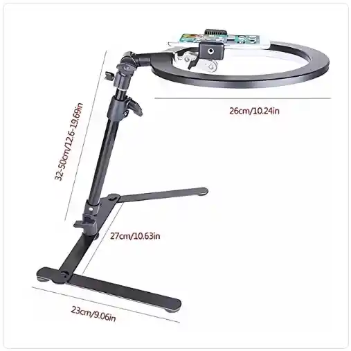 Aro de luz que cuenta con 3 modos de iluminación de color (cálido/natural/frío) 10 niveles de brillo ajustable que proporcionan una temperatura de color de 2700K a 6500K. Podrás crear cualquier tipo de entorno de iluminación y satisfacer todas tus necesidades de iluminación. Luz de anillo perfecto para videoconferencias, reuniones de zoom, maquillaje, grabación de video, videollamada, transmisión en vivo y enseñanza en línea. CARACTERÍSTICAS: Tipo de fuente de luz: LED. Longitud de cable: 1,5m. Diámetro exterior: 26 cm. Potencia de salida; 12W. Bombillas LED de 1300 lúmenes. Longitud de cable: 1,5m. Diámetro exterior: 26 cm. Temperatura de color: 3000K-4500K-6000K. Método de alimentación: Fuente de alimentación USB. Ajuste de brillo: Ajuste de fuente de luz de diez velocidades ajustable en tres colores. Material: Aleación de aluminio. El clip de teléfono es adecuado para 6-10 cm. INCLUYE: Aro de luz 26cm. Soporte para celular. Trípode. Base. Tornillería.