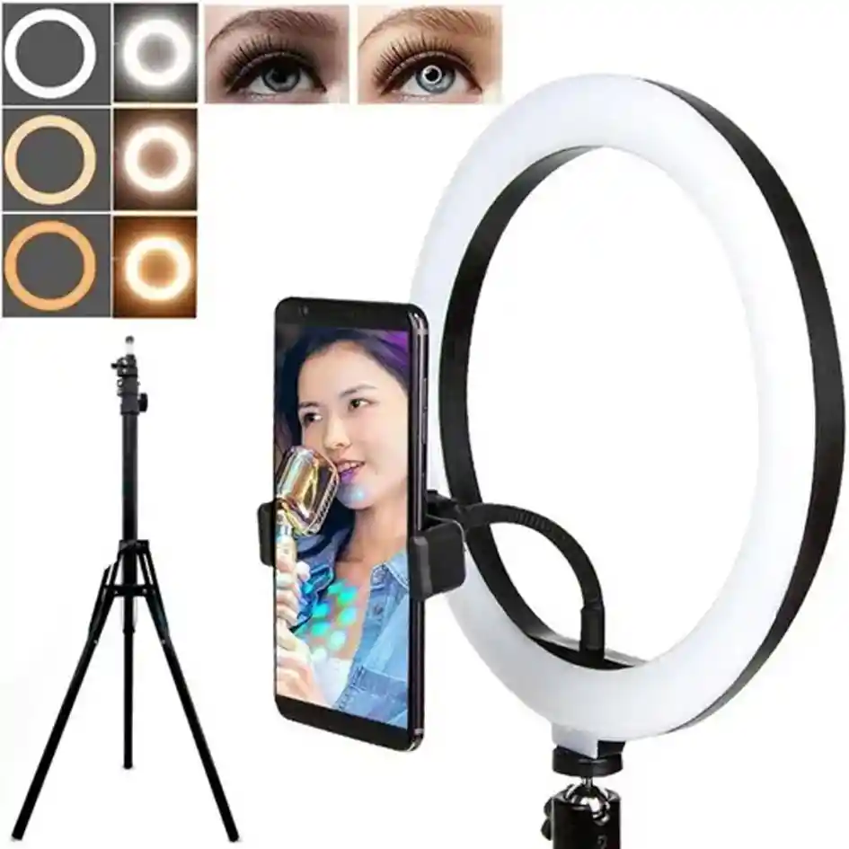 Aro De Luz Led 33 Cm Foto Selfie + Trípode Y Soporte Celular La luz de anillo de fotografía es una buena opción para tomar mejores selfies y vlogs personales. Los kits de luz de anillo de selfie agregan suficiente luz a tu rostro cuando grabas video, hacen que tus líneas faciales sean más estereoscópicas y más claras. Hecho de materiales plásticos de alta transmisión de luz, que es ligero, temperatura de color constante y baja pérdida. Esta luz de anillo admite alimentación enchufable lo puedes conectar con un cargador de celular recomendamos conectarlo con un cargador de celular original de carga rapida, este no va inlcuido. Puede ayudarlo a tomar bellas imágenes incluso en lugares donde la alimentación del enchufe es inconveniente. CARACTERÍSTICAS 1 Aro de 33 cm Color: Negro 1 Soporte para celular 1 trípode 2.1 mt altura ajustable Material: plástico Medidas: 33 cm x 210 cm 4cm Respaldo y garantías en todos nuestros artículos ventas por mayor y al detal.