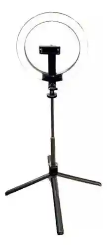 Trípode para Celular con Aro de Luz Tres Tonos de Luz Fría y Cálida Soporte Cuadrúpedo Altura máxima 2.3M Puedes poner Horizontal y Vertical 315x265x75mm Batería 1.200Mah Bluetooth 5.2 Peso 695gr Control Bluetooth