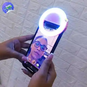 Aro de Luz LED con batería recargable incorporada, 36 chips LED de alta calidad, con cable USB, no requiere batería adicional. Simplemente péguelo a su teléfono o Tablet. El clip tiene un tope de goma para ayudar a proteger su teléfono contra rasguños cuando lo atrapa. Tres niveles de brillo, que son adecuados para diferentes fondos de iluminación. Simplemente presione el botón de encendido y podrá cambiar la iluminación según sus necesidades. Para todos los teléfonos: Compatible con todos Smartphones o tabletas de iPhone y Android. CARACTERÍSTICAS • 36 bombillas LED súper brillantes, proporcionan iluminación adicional o lateral para fotografía o videografía creativa.• Fácil de usar; Con 3 modos de iluminación diferentes, encontrará la iluminación necesaria para que sus fotos se tomen• Encantadoras selfies, encuentran las cosas perdidas o se iluminan en la oscuridad.• Mouth Clip lo suficientemente grande como para engarzarlo en teléfonos inteligentes, tabletas, etc. Compatible con todos los teléfonos inteligentes.• Embellece la cara y ilumina los ojos en la fotografía. Tamaño compacto, muy portátil para guardar en bolsillos, bolsos, paquetes, etc.• También le ayuda a obtener imágenes y vídeos de mayor calidad cuando la luz natural no está disponible.• Está diseñado con antideslizante. EL PAQUETE INCLUYE: • 1 Selfie Light• 1 Cable USB