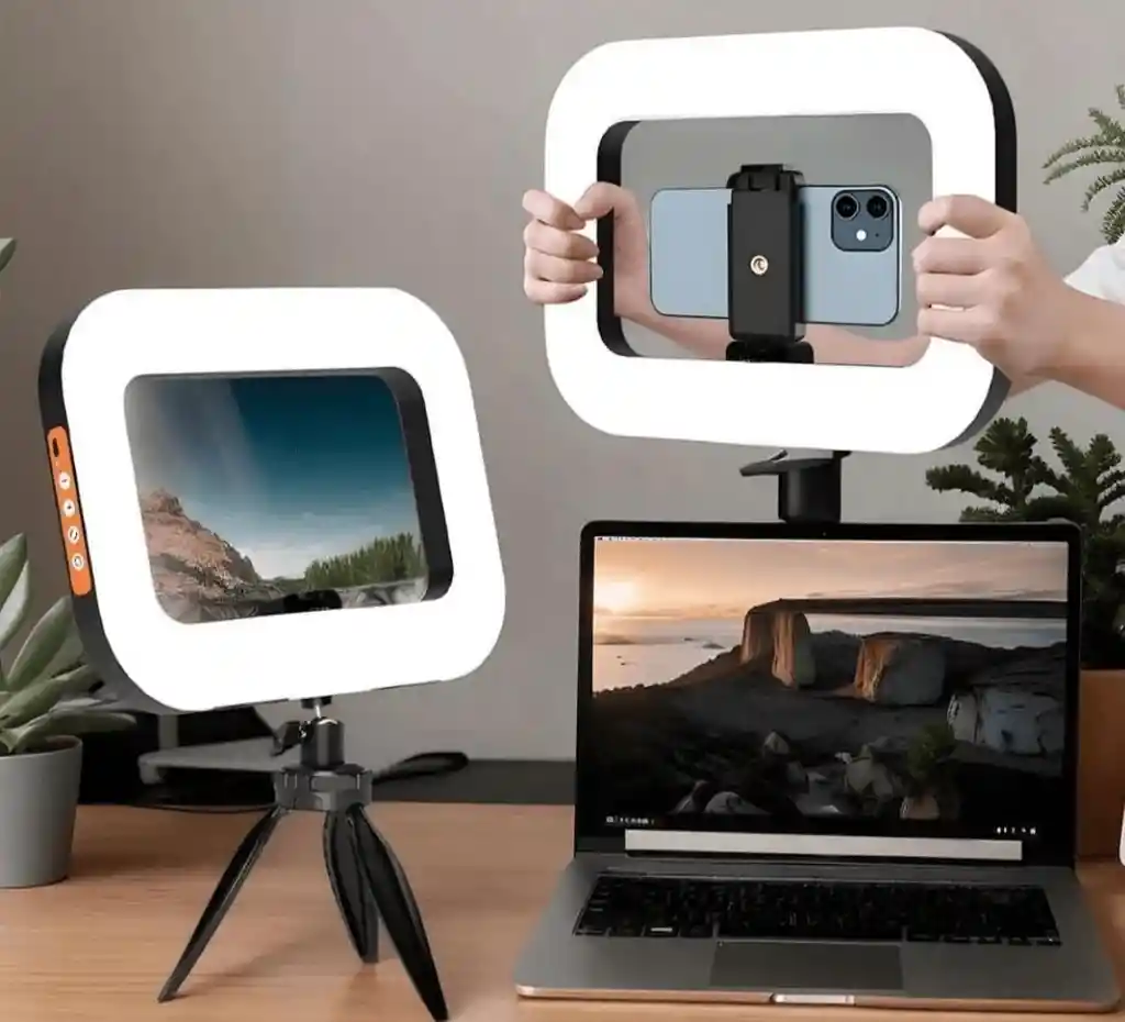La iluminación LED de este aro de luz rectangular proporciona una luz uniforme y suave, ideal para fotografía, maquillaje y videoconferencias. Su diseño ajustable permite modificar la intensidad y la temperatura del color, adaptándose a diferentes ambientes y necesidades. Con un soporte estable y fácil de transportar, este aro es perfecto para uso en interiores y exteriores. Ilumina tus fotos y videos como un profesional con este Aro de Luz Rectangular LED con soporte para celular, ideal para creadores de contenido, maquilladores, barberías, videollamadas, transmisiones en vivo, TikTok, Reels y más. Su diseño rectangular ofrece una iluminación más amplia y uniforme, reduciendo sombras y mejorando la calidad visual de tus grabaciones Características principales - Aro de luz LED rectangular: Iluminación uniforme y más amplia que un aro circular. -Soporte para celular integrado: Ajustable y compatible con cualquier smartphone. -3 modos de color: Luz cálida, fría y neutra. -Brillo regulable: Ajusta la intensidad según tu necesidad. - Alimentación USB: Conéctalo a powerbank, laptop o cargador. - Diseño compacto y liviano: Fácil de transportar y usar en interiores o exteriores. -Perfecto para creadores: Ideal para maquillaje, barbería, fotografía, videos, lives, tutoriales, influencers, etc.