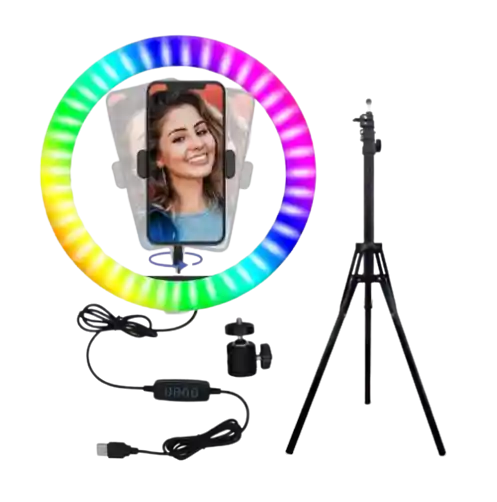 -7 colores y hasta 15 combinaciones de iluminación -25cm -Largo aproximado del cable 180 cm -Trípode con altura máxima aproximada 140 cm -Intensidad y temperatura de color variable y regulable -Funciona conectado a un puerto USB de 5V (No incluye adaptador)
