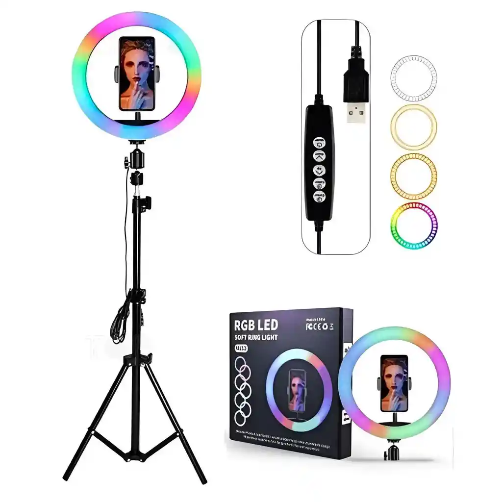 💡🎨 Ilumina tus videos, fotos y transmisiones con estilo. Este aro de luz de 26 cm ofrece una amplia gama de colores RGB para efectos únicos. 🔹 Características destacadas: ✔️ Diámetro: 📏 26 cm – Ideal para maquillaje, fotografía, streaming y más. ✔️ Varios niveles de intensidad 🔆 – Ajusta el brillo para cada ocasión. ✔️ Tonalidades de luz RGB 🌈 – Personaliza la iluminación con múltiples colores. ✔️ Conexión USB 🔌 – Compatible con adaptadores, power banks o PC. ✔️ Largo del cable: 🏷️ 180 cm – Uso práctico en cualquier espacio. 📷✨ ¡Dale un toque profesional y colorido a tus creaciones! 🛒