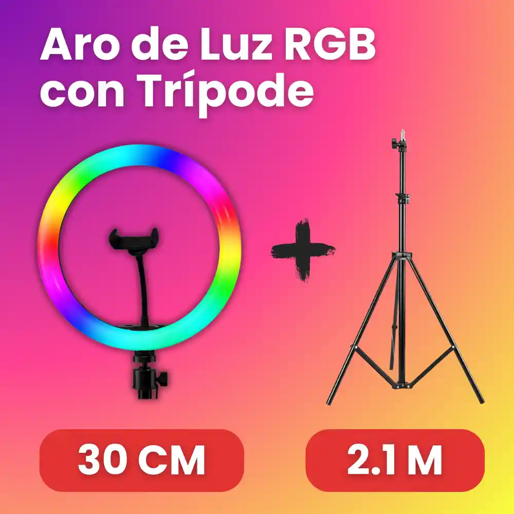 Aro de luz RGB LED de 12 pulgadas (30 cm) diseñado como luz de relleno para transmisiones en vivo, grabación de videos y fotografía. Incluye trípode ajustable hasta 2,1 m, soporte para celular y control por cable con múltiples modos de color y niveles de brillo. Alimentación por USB. ⚙️ Características principales ✦ Aro de luz RGB LED con múltiples colores ✦ Diámetro del aro: 12 pulgadas / 30 cm ✦ Trípode metálico ajustable hasta 2,1 metros ✦ Control por cable con botones: - Encendido / apagado - Cambio de modo - Ajuste de brillo (subir / bajar) - Selección de color RGB ✦ Soporte para celular ajustable ✦ Cabezal orientable (rotación y ajuste de ángulo) ✦ Luz difusa, suave para los ojos ✦ Alimentación mediante USB 📦 Incluye ✦ 1 aro de luz RGB LED de 12” (30 cm) ✦ 1 trípode ajustable ✦ 1 soporte para celular ✦ 1 brazo flexible / adaptador de montaje ✦ Control por cable integrado ✦ Cable USB de alimentación 📐 Especificaciones técnicas ✦ Modelo: MY-7181 ✦ Tipo de luz: RGB LED ✦ Diámetro del aro: 30 cm (12”) ✦ Altura máxima del trípode: 2,1 m ✦ Alimentación: USB ✦ Control: Botonera en cable ✦ Ajuste de ángulo: Sí (rotación y basculación) ✦ Compatibilidad: Teléfonos móviles (ancho ajustable del soporte) ✦ Uso: Interior ⚠️ No incluye adaptador de corriente. Se puede usar con cargador USB, power bank o puerto USB. 🎯 Ideal para ✦ Streaming en vivo ✦ Grabación de videos para redes sociales ✦ Fotografía básica y retrato ✦ Videollamadas y clases virtuales ✦ Creadores de contenido, influencers, maquilladores ✦ Iluminación para anuncios y transmisiones