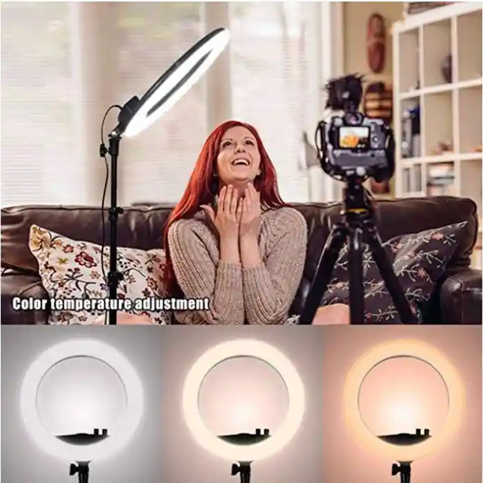 • Aro de luz ring fill light led con diámetro de 56 cm • Tiene varios niveles de intensidad, la luz cambiará con efectos increíbles en imágenes o vídeos. • Hace imágenes mucho más nítidas y detalladas. • Tiene luz cálida, nuestra y luz fría, las cuales se pueden combinar para variar el tipo de iluminación. • Diámetro aproximado 56cm. • Largo aproximado del cable 180 cm. • Intensidad y temperatura de color variable y regulable. • Potencia 65 W • Temperatura de color 3000K – 6000K Contenido del paquete: -Aro De Luz Led 56 Cm -Soporte para celular -Trípode