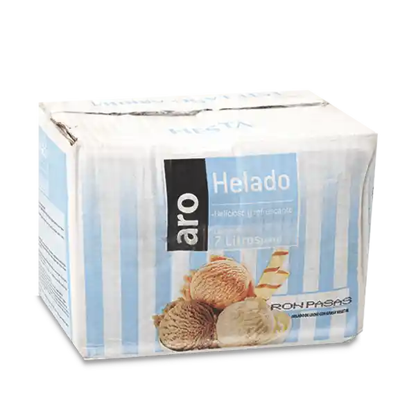 Helado Sabor Ron Con Pasas, Delicioso Y Refrescante. Caja X 7 L. Packing: Caja. Producto Aro, Marca Propia De Makro. packing: Bolsa