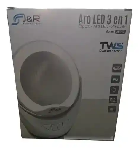 El Aro LED 3 en 1 JYR (Modelo J5212) es un dispositivo de belleza y creación de contenido que integra un espejo, luz LED regulable y un parlante Bluetooth en un diseño compacto. Incluye carga inalámbrica, batería recargable y soporte para celular, ideal para maquillaje, streaming y videollamadas.