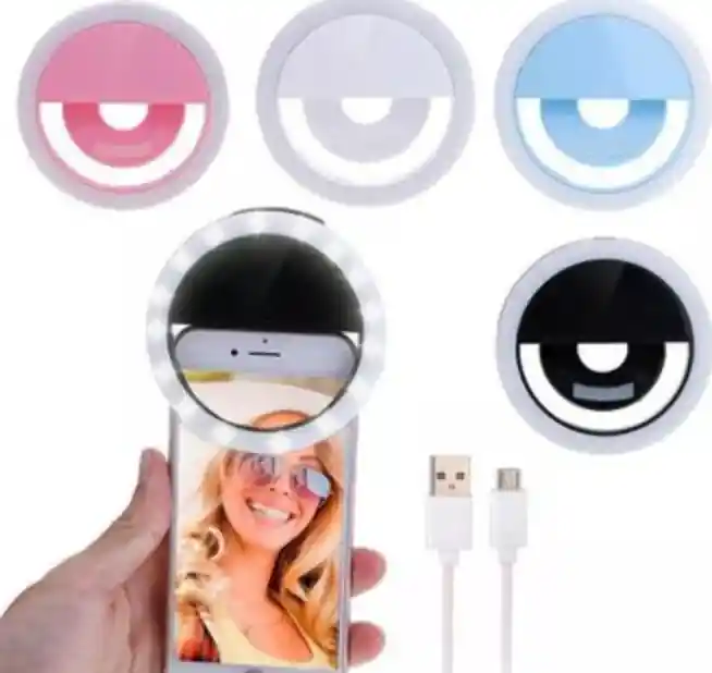 Profesional Selfie belleza lámpara teléfono móvil lente portátil Flash anillo luz LEDS anillo luminoso Clip para IPhone Samsung Xiaomi Características: Usar una alfombrilla antideslizante no daña la lente del teléfono móvil. No te preocupes más por los rasguños de tus dispositivos. Con luz natural, brillo de iluminación uniforme, rango de iluminación ultra amplio, para que pueda obtener tonos de piel de aspecto natural. También puede usarlo como antorcha, luz de emergencia, luz de maquillaje, luz LED nocturna e incluso más. Esta luz de selfie especialmente diseñada proporciona iluminación adicional o lateral para la fotografía cuando tenga condiciones de luz baja. Flash macro tipo anillo diseñado especialmente para primeros planos, médicos, científicos, fotografía legal, etc. Pinza con protectores para tu celular, recargable. el color y el diseño puede variar.