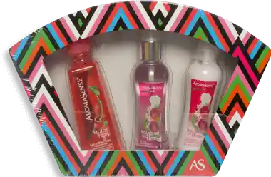 Estuche Aromasense contiene energy splash bouquet, crema bouquet corporal y gel de frutos rojos.
