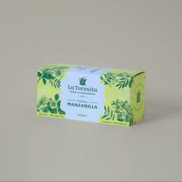 En La Teresita te recomendamos la manzanilla porque sabemos que es ideal para descansar, disminuir la ansiedad y el estrés. Encuentra todas sus bondades en una cajita de aromática de Manzanilla La Teresita con ingredientes 100% naturales. ¡Disfruta de una taza llena de amor a la hora de descansar! *Cada caja trae un total de 20 bolsitas aromáticas