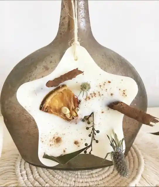 Figura en cera de soya con olor y flores, su funcion: decorar y aromatizar algun espacio cerrado como closet, oficinas, baños, etc...