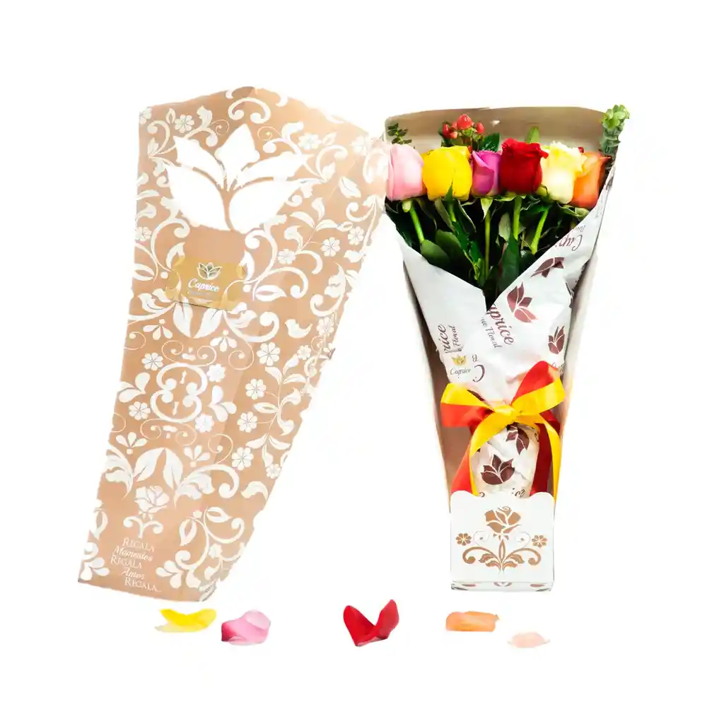Caja de diseño Premium con 12 rosas variadas de exportación y decoración interna. incluye tarjeta dedicatoria. tarjeta de cuidado de la flor y alimento floral En caso de desear un mensaje con el arreglo por favor dejarlo en los comentarios.
