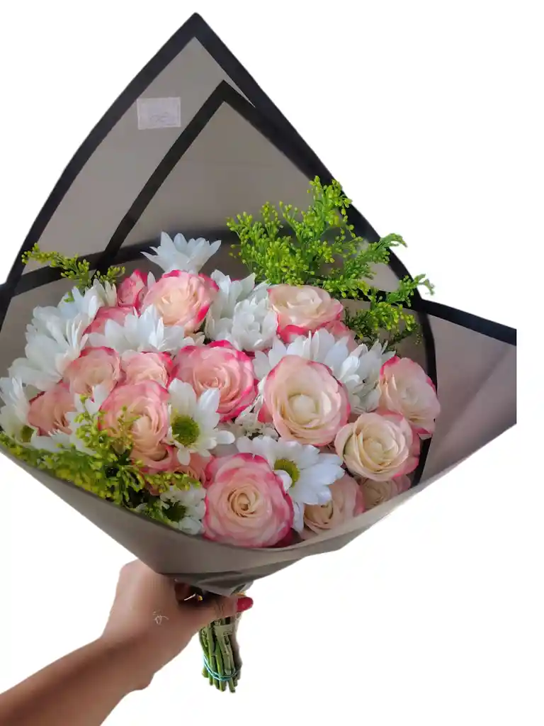 Buquet de margarita, mini rosa, aster, papel coreano ( el color varia dependiendo de la disponibilidad)