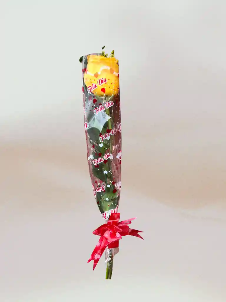 Una Rosa Amarilla en papel Celofan. Pide tu mensaje personalizado por el chat.