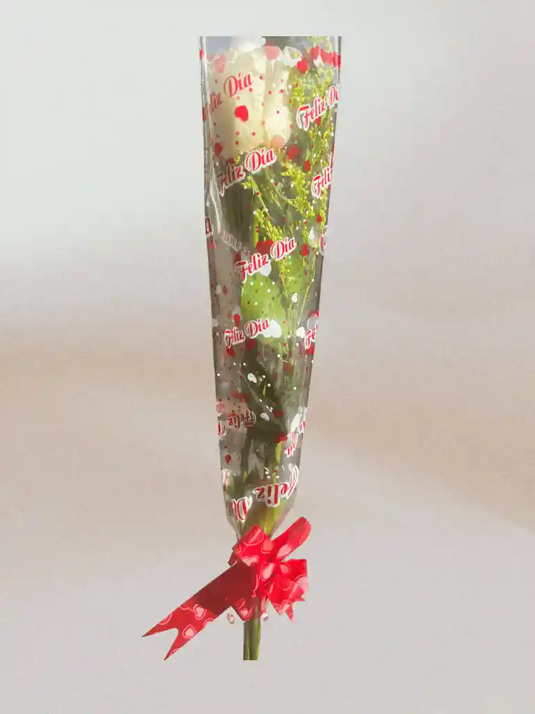 Bouquet de rosa blanca x1 en papel celofán en cono. Pide tu mensaje personalizado por el chat.