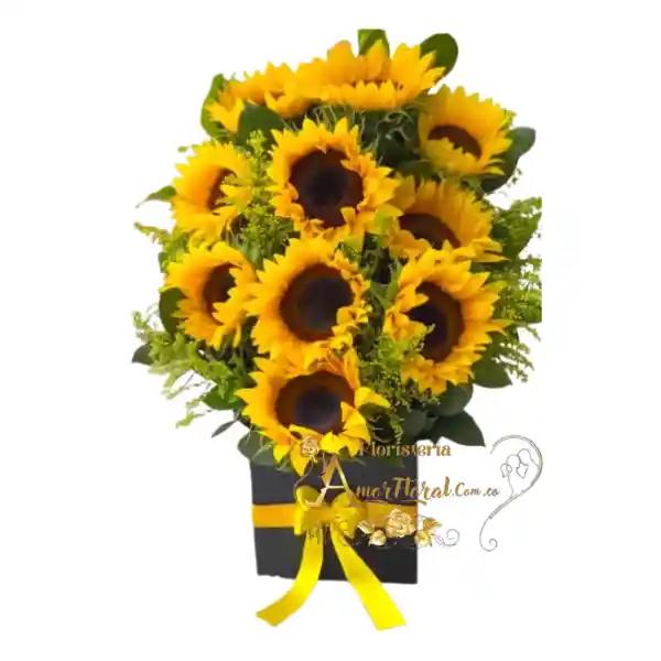 Arreglos de 10 girasoles, si deseas un mensaje para la tarjeta lo puedes dejar escrito en el área de observaciones o escribirnos al whatsapp al 3143111616 y enviarnos el mensaje para la tarjeta.