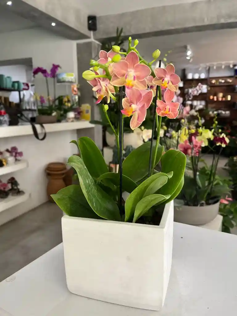 Arreglo de Orquídea Mini Rosada en Base Blanca | Regalo Elegante a Domicilio Hermoso arreglo floral con orquídea mini Phalaenopsis rosada, diseñado para regalar y sorprender con un detalle sofisticado y lleno de vida. Este arreglo destaca por sus flores rosadas con centro amarillo, símbolo de elegancia, cariño y armonía. Viene presentado en una base blanca cuadrada de diseño moderno, cuidadosamente armado y listo para entregar. Es una opción perfecta para quienes buscan un regalo natural, elegante y duradero, ideal para envío inmediato por Rappi. 🌸 Características del arreglo Arreglo floral con orquídea mini natural Flores rosadas exóticas y decorativas Base blanca cuadrada incluida Presentación moderna y minimalista Listo para regalar Ideal para interiores 🎁 Perfecto para: Cumpleaños Aniversarios Detalles románticos Regalos corporativos Envíos de flores y plantas a domicilio 🌿 Cuidados del arreglo Luz: Luz indirecta brillante Riego: Moderado, 1 vez por semana Ambiente: Interior Duración: Flores de larga duración con cuidados básicos Compra este arreglo de orquídea mini rosada y recíbelo a domicilio con presentación elegante, ideal para sorprender en cualquier ocasión.