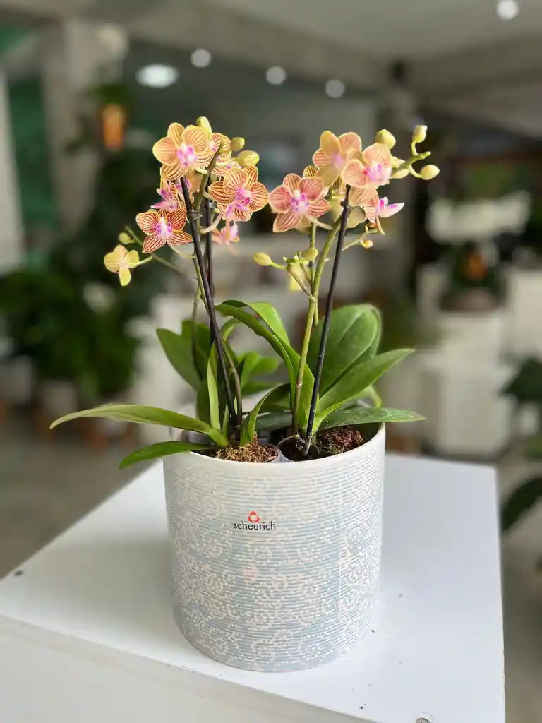 Arreglo de Orquídea Mini Rosada en Base de cerámica importada | Regalo Elegante a Domicilio Hermoso arreglo floral con orquídea mini Phalaenopsis rosada, diseñado para regalar y sorprender con un detalle sofisticado y lleno de vida. Este arreglo destaca por sus flores rosadas con centro amarillo, símbolo de elegancia, cariño y armonía. Viene presentado en una base blanca cuadrada de diseño moderno, cuidadosamente armado y listo para entregar. Es una opción perfecta para quienes buscan un regalo natural, elegante y duradero, ideal para envío inmediato por Rappi. 🌸 Características del arreglo Arreglo floral con orquídea mini natural Flores rosadas exóticas y decorativas Base de cerámica importada cilíndrica incluida Presentación moderna y minimalista Listo para regalar Ideal para interiores 🎁 Perfecto para: Cumpleaños Aniversarios Detalles románticos Regalos corporativos Envíos de flores y plantas a domicilio 🌿 Cuidados del arreglo Luz: Luz indirecta brillante Riego: Moderado, 1 vez por semana Ambiente: Interior Duración: Flores de larga duración con cuidados básicos Compra este arreglo de orquídea mini rosada y recíbelo a domicilio con presentación elegante, ideal para sorprender en cualquier ocasión.
