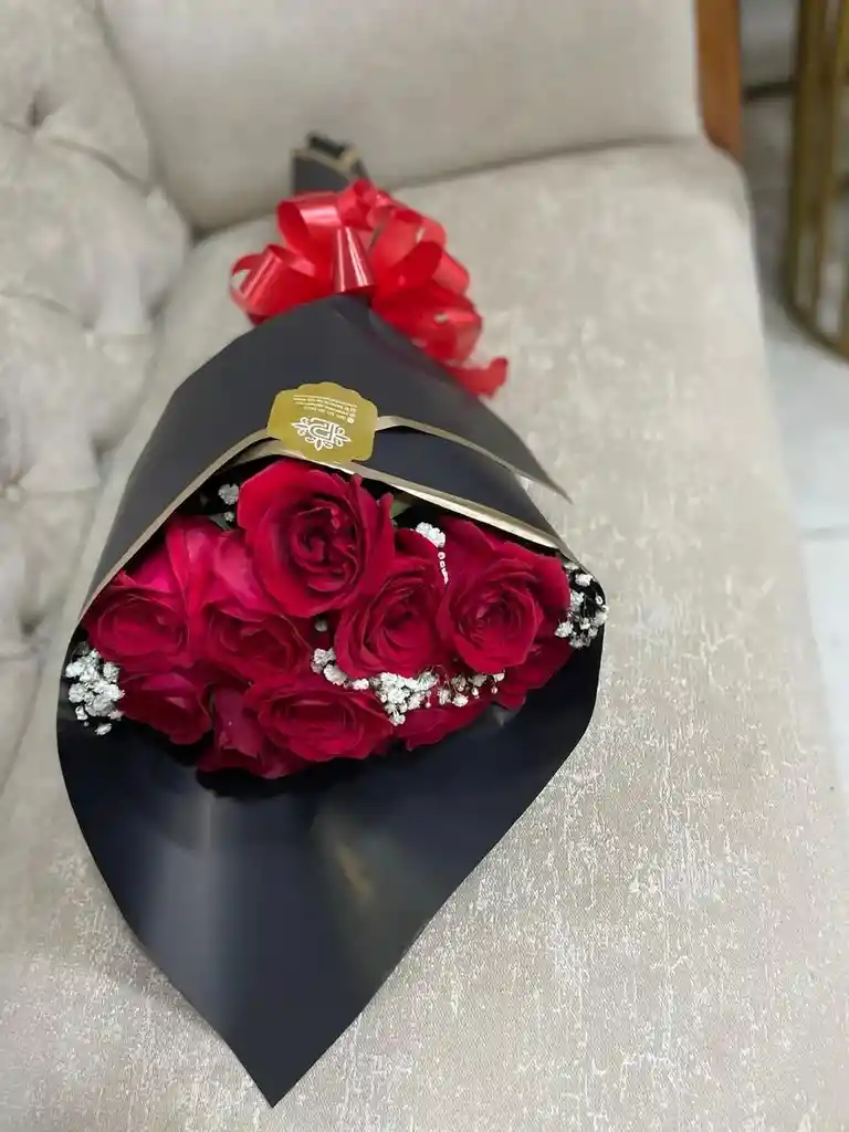 arreglo floral en buquet de 12 rosas premium rojas perfectos para aniversario, amor, dia de la madre.
