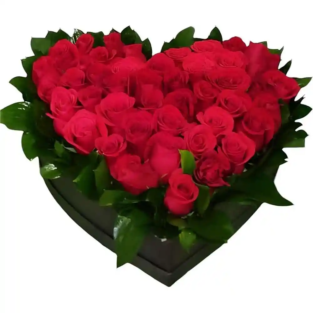 Arreglo floral con tapizado de rosas de tu color favorito en forma de corazón con follaje variado