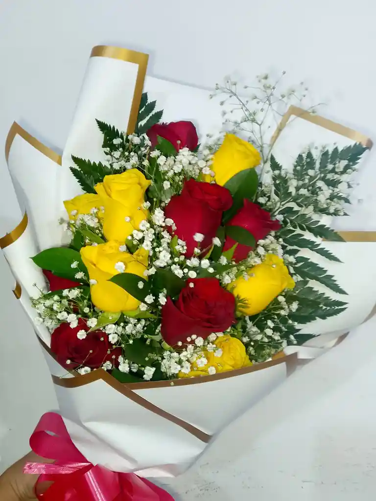 arreglo elaborado con rosas rojas y amarillas